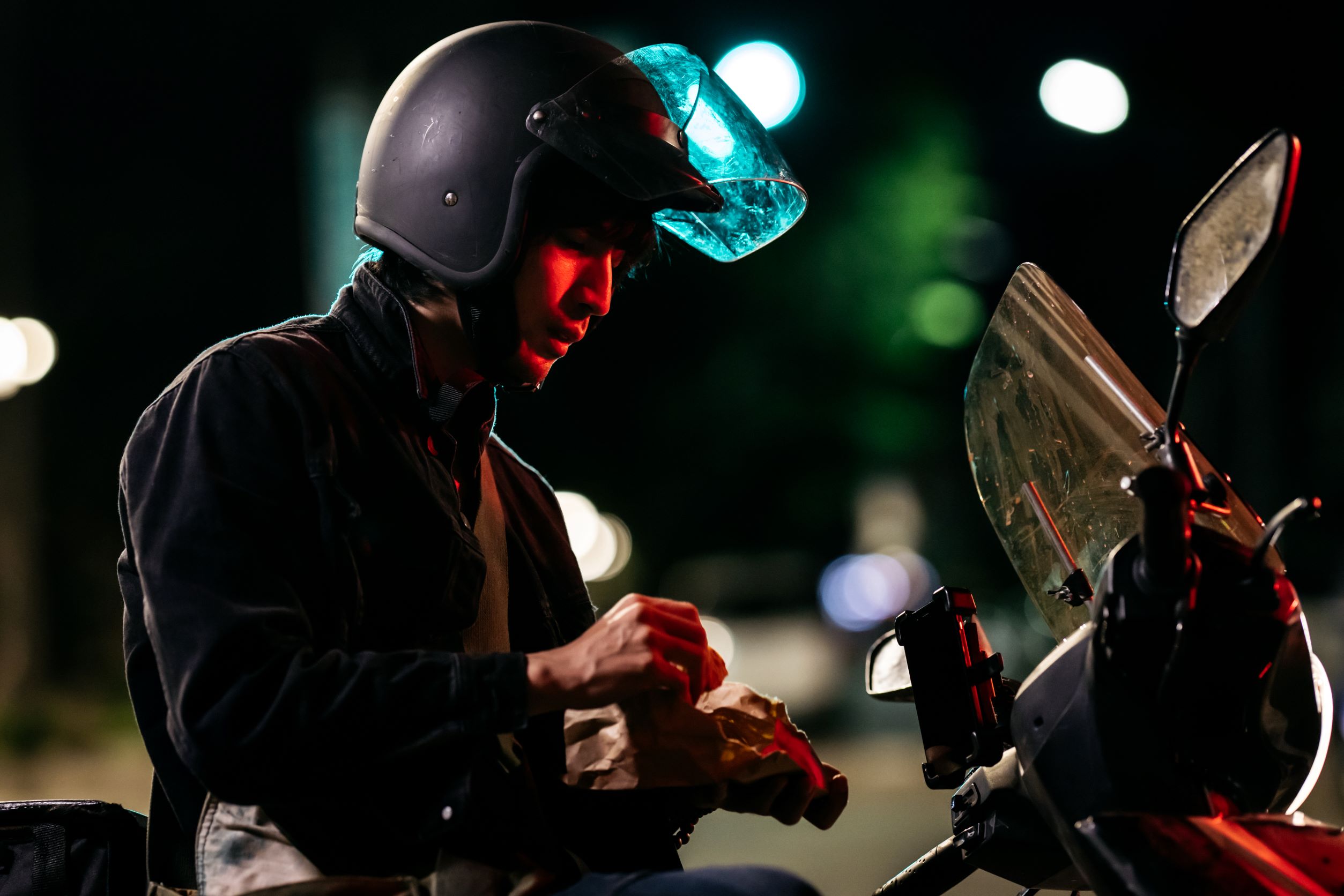 Matsui (Yusuke Fukuchi), a homeless food delivery driver, spends his days and nights traveling from destination to destination without any place to find true solace. Longing to make a connection, he becomes infatuated with a beautiful young prostitute Ching (Yun-Chih Wang). But her sudden disappearance drags him deeper into depression. Disheartened, Matsui rejects the warmth and compassion of Helen (Huei-Ling Jan), a middle-aged Filipino cleaner, who is constantly harassed by Wang (Jieh-Wen King), the security guard inside her apartment complex.