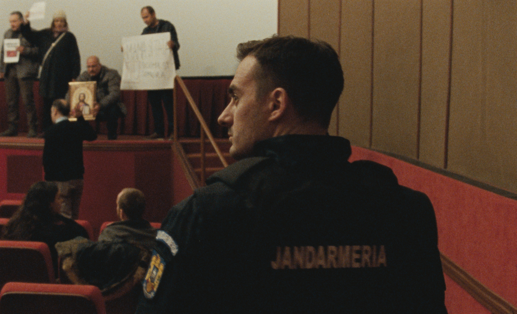 Planning to spend a romantic weekend with his long-distance boyfriend, Christi's tender reunion is cut short when he is called in to handle a crisis at work. Christi is a member of the Bucharest police force, and his unit is sent to quell a protest at a local movie theater, where a far-right group has interrupted the screening of a queer film. As tensions between the homophobic protesters and the audience mount, Christi, closeted to his fellow officers, begins to spiral out of control when he spots a former fling in the crowd. A violent outburst threatens to expose Christi’s secret and forces him to confront the contradictions between his personal and professional life. Inspired by true events, POPPY FIELD “reveals aspects of the wider damage done by prejudice that are rarely seen onscreen” (Eye for Film) and is a “worthy entry into the Romanian New Wave” (Art House Street).