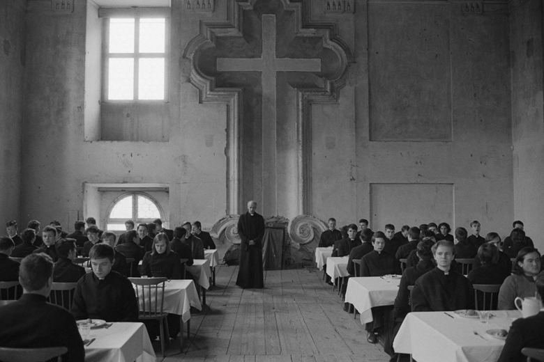 In Czechoslovakia, 1980, the totalitarian Communist regime demands allegiance from all its subjects, including the clergy. Servants follows Michal and Juraj, two conflicted novitiates whose seminary is under increasing pressure by the Party to mold its students into satisfactory citizens. With the school on the brink of dissolution, and its head priest a target for blackmail, Michal and Juraj will have to choose between collaborating with the government as informants, or becoming targets of the secret police. Shot in striking, atmospheric black-and-white, Servants is both a brooding morality tale and a taut political thriller "that jitters and shivers with anti-authoritarian sentiment beneath its serene monochrome aesthetic" (Variety).